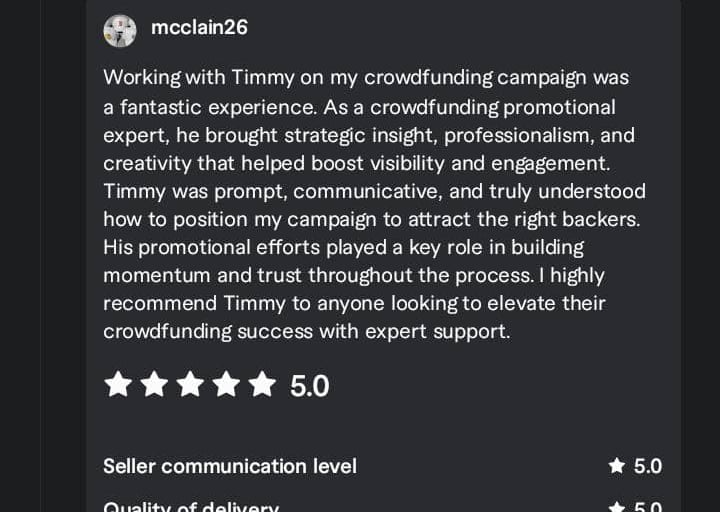 Temmy's guidance transformed my crowdfunding campaign. Their expertise in planning and marketing made reaching my goal possible. I couldn't have done it without them!